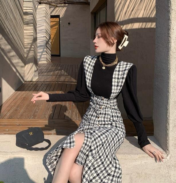 秋冬新作 女 レディース 袖なし サロペットスカート ロング ワンピース 台型スカート セット