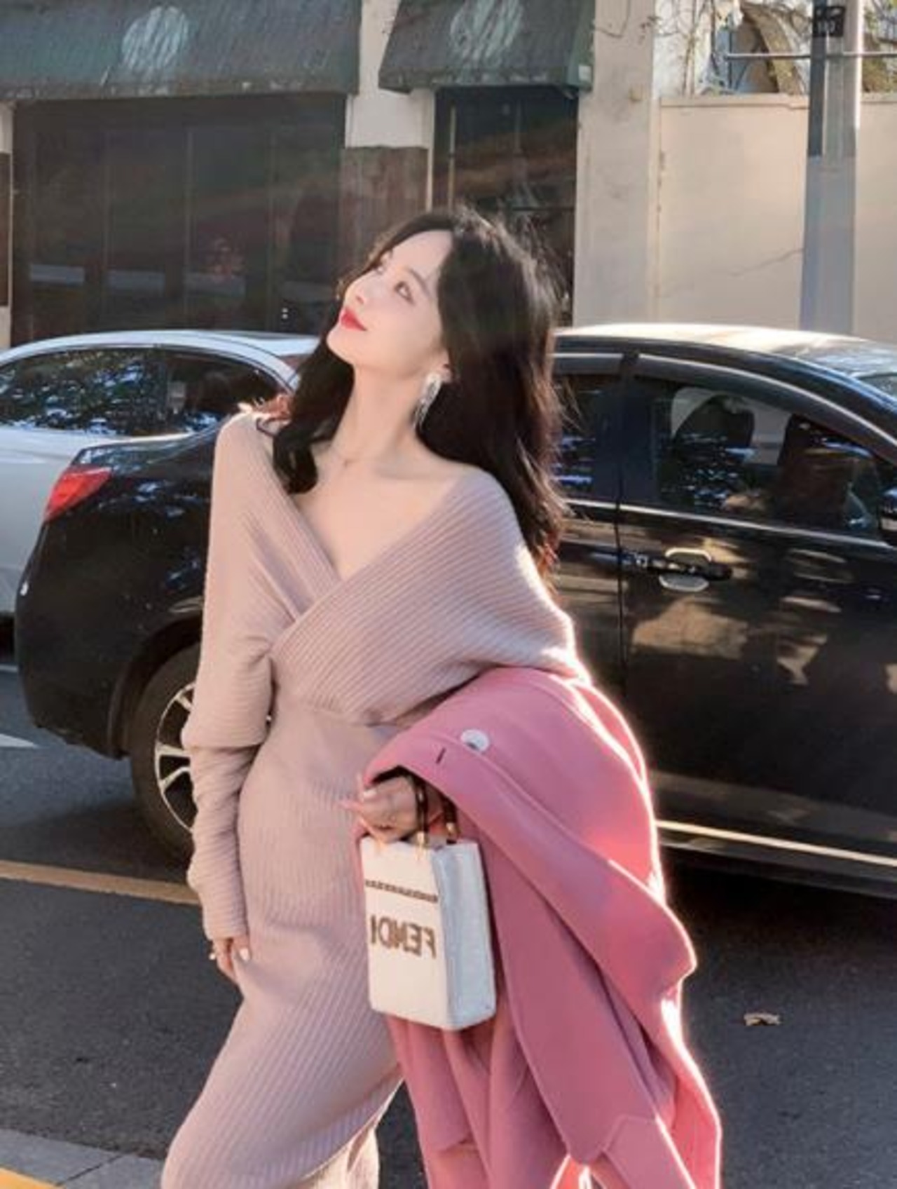 2022秋冬新作 女 レディース ハイウエスト 長袖 Vネック ニット ロング ワンピース 台型スカート 6色