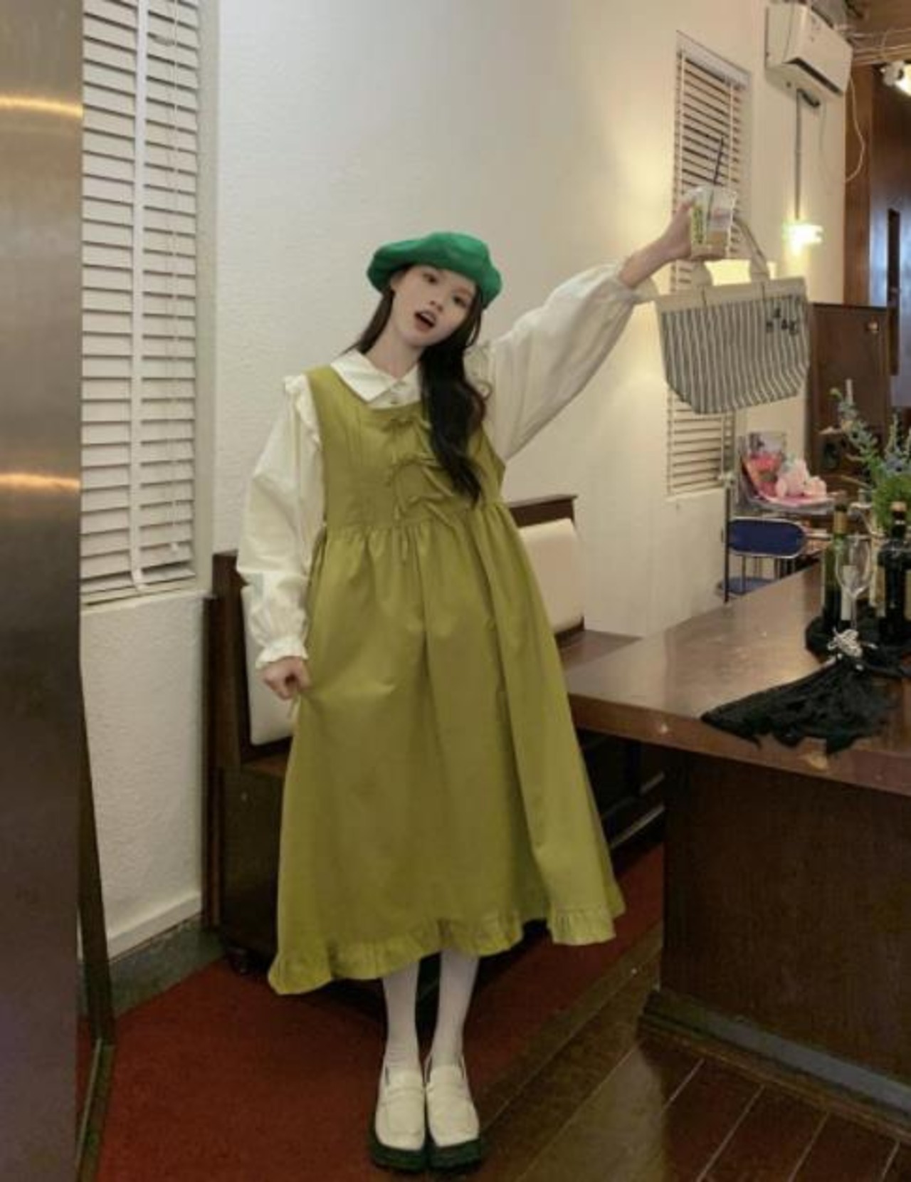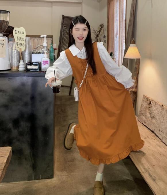 2022秋冬新作 女 レディース ハイウエスト 袖なし 無地 ロング ワンピース 台型スカート セット