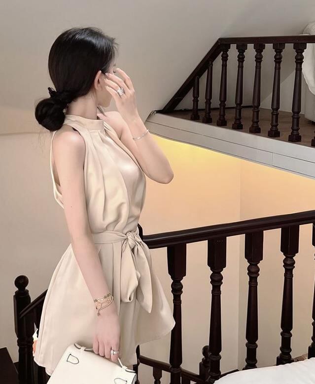 2023春夏新作 女 レディース ハイウエスト 袖なし ミニ ワンピース ドレス 台型スカート S-2XL