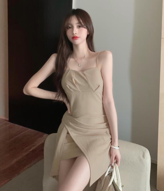 春夏新作 女 レディース ハイウエスト 袖なし 吊りスカート ミニ ワンピース ドレス 台型スカート S-XL