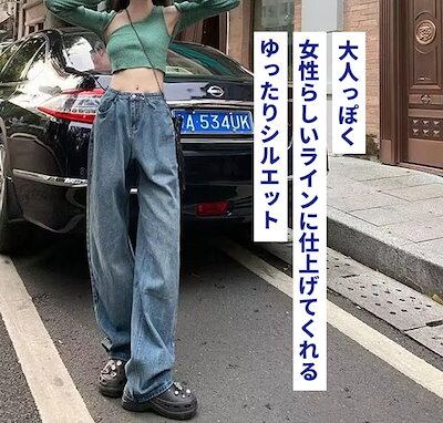 【即納】ワイドパンツ デニム レディース 調節 ハイウエスト ストレートデニム トレンド 体型カバー 小尻効果 骨格ウェーブ 骨格ストレート ゆったり ウエストホック 可愛い 韓国ファッション