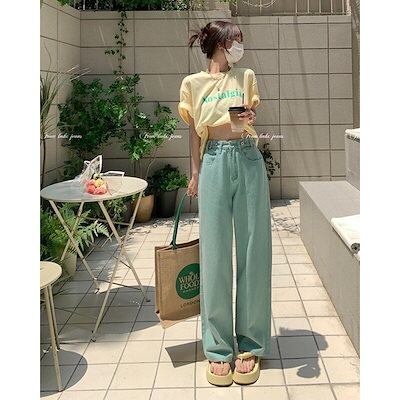 スキニーパンツデニムパンツ ワイドパンツ脚長効果!スキニーパンツマカロンカラー ジーンズ 韓版デニムパンツ ゆったり 百掛け ストレート ハイウエスト ワイドパンツ 長ズボン