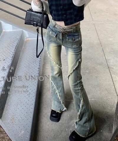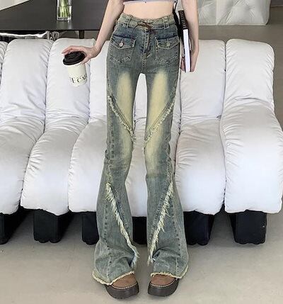 2024春夏 アメリカン パンツ デニム ブルー ジーンズ ロング丈 スキニー レッグ加工 ハイウエスト 脚長効果 美脚効果 細見え 秋 カジュアル 韓国ファッション お出かけ1 | coolcoool