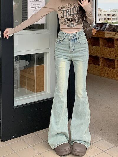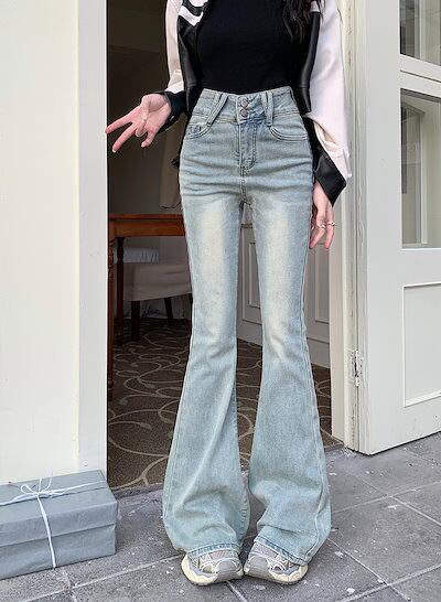 2025春夏 デニムパンツ ボトムス ハイウエスト ジーンズ K-POP ファッション系韓国風ファッションウェア練習ジーンズ シルエット加工ゆったり レディースカジュアル型春夏メンズライク衣装