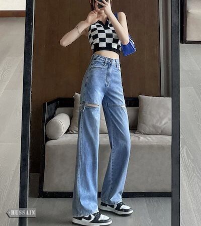 2024 春夏 ハイウエスト デニムパンツ 韓国 レディース ジーンズ 脚長 スタイルアップ カジュアル ファッション系きれいめ