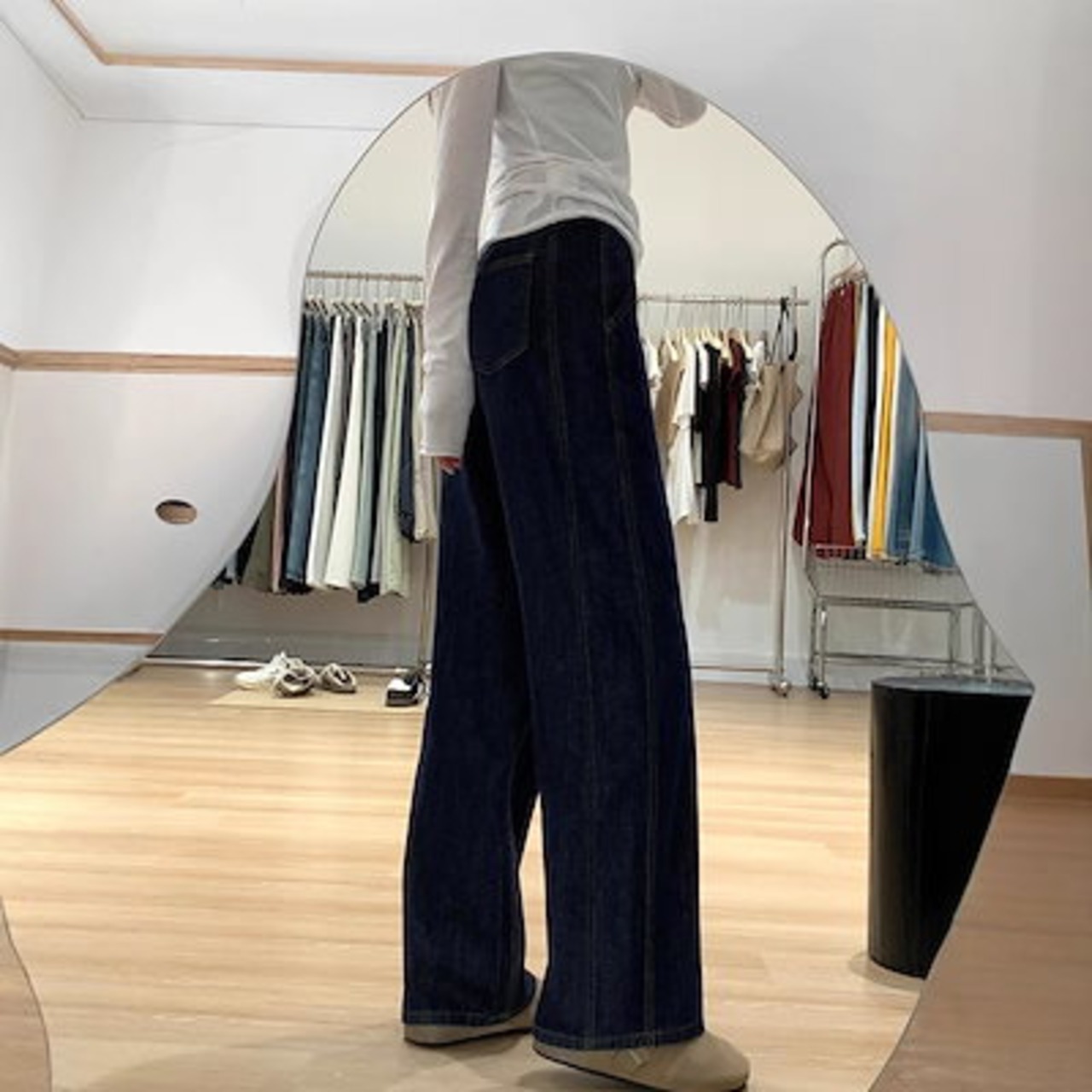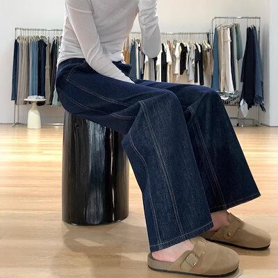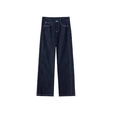 【3日以内出荷】脚長効果!デニムパンツ ネイビーブルー ジーンズ レディース 大きいサイズ スリム 春秋 ワイドパンツ ハイウエスト ゆったり ストレートパンツ 韓国ファッション | coolcoool