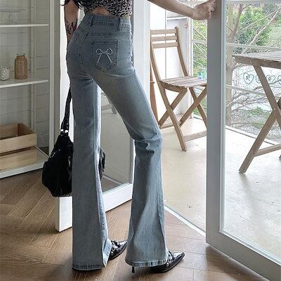 2024春夏パンツ デニム ジーンズ レッグ スキニー 脚長効果 美脚効果 細見え 夏 ライトブルー カジュアル おしゃれ 韓国ファッション レディース お