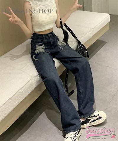 2024 春夏 usedライクなこなれた雰囲気 ハイウエスト ファッション ジーンズ ズボン ボトムス レッグ デニムパンツ スタイルアップ 脚長 ゆったり カジュアル きれいめ | coolcoool