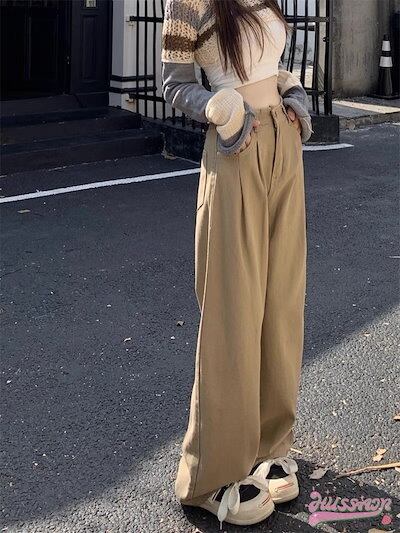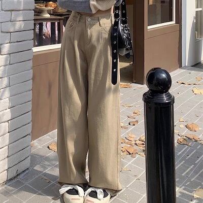 2024春夏パンツ デニム ジーンズ ワイド ストレート ハイウエスト 脚長効果 美脚効果 細見え ウォッシュ加工 春 白 茶色 カジュアル 韓国ファッション レディース お出かけ | coolcoool