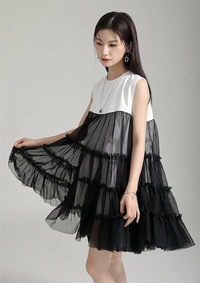 【J.Fashion】 ワンピース風 チュニック ニセ2セット 夏 Aライン 体型カバー ショートワンピース ロングブラウス マッシュ ゆったり レディース おしゃれ 上質 関連商品購入可能 メガ割 | coolcoool