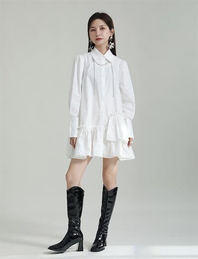 【J.Fashion】 Aライン ショートワンピース 不規則 ドッキングワンピース 体型カバーチュニック レディースワンピース シャツワンピース 「ベルトは店で購入可能」 メガ割 | coolcoool