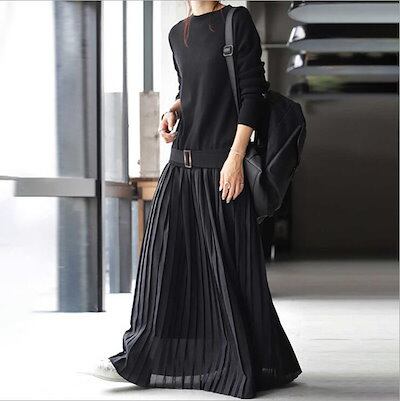 【2枚購入で 2oo円OFF! 】秋冬 新作 長袖 プリーツワンピース 着痩せ 体型カバー ニット ワンピース レイヤード風 Aライン ロングワンピース 重ね風 ロング丈 レディース シンプル 切り替 | coolcoool
