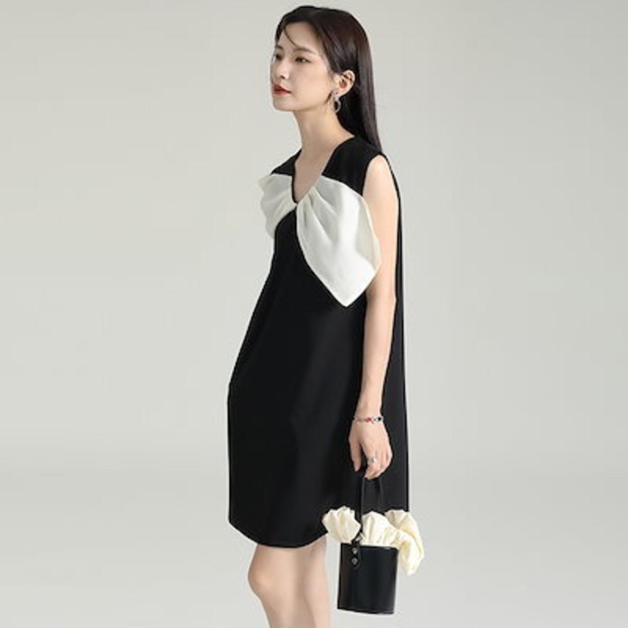 【J.Fashion】 Aライン 体型カバー チュニック ショートワンピース 蝶結び飾り ロングブラウス ノースリーブ ワンピース レディース おしゃれ 上質 関連商品は店で購入可能 メガ割 福袋 | coolcoool