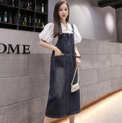 新作 夏  サロペットスカート デニム ワンピース キャミワンピース プリーツ Aライン スリット 体型カバー 着やせ 高級感  韓国ファッション カジュアル 百掛け