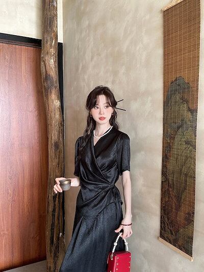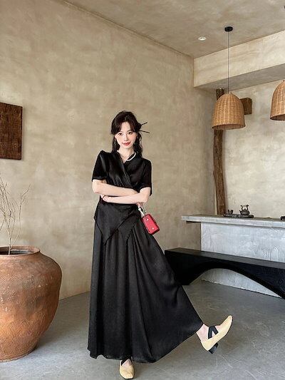 上下セット ストラップブラウス+スカート ワンピースセット シワデザイン Aライン レディース セットアップ
