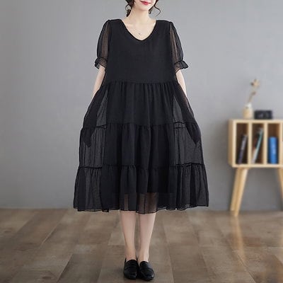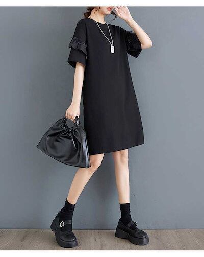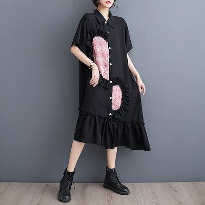 「ファットガール」 夏ワンピ フリル ショート/ミドル丈 Aライン 体型カバー 大きいサイズ レディース ワンピース