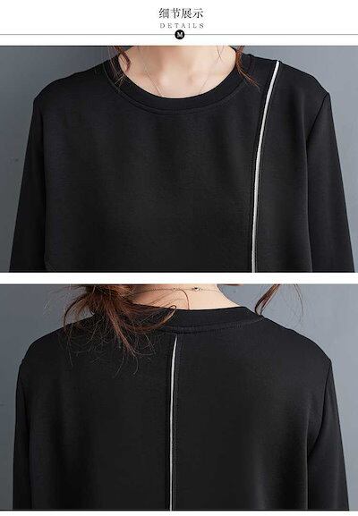 「ファットガール」 2023秋 黒ワンピース 後ファスナー ロング丈 ドッキング ゆったり Aライン レディース ジッパー ロングワンピース メガ割