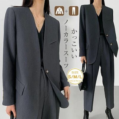 セットアップ レディース フォーマル スーツ レディース セレモニー ビジネススーツ 大きいサイズ ノーカラー スーツ テーラードジャケット&ワイドパンツ 2点セット 入学式 卒業式 入園式 卒園式 | coolcoool