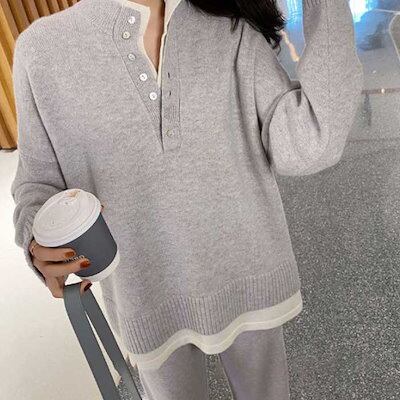 ニットセットアップ レディース 秋冬 セットアップ ニット パンツ 大きいサイズ ロングパンツ セーター プルオーバー ワイドパンツ大人可愛い 可愛い かわいい おしゃれ 普段使い ゆったり 無地 | coolcoool