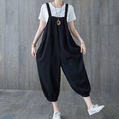 パンツワイドパンツゆったりオーバーオールサロペット体型カバーレディースオールインワン9分丈サルエルマタニティ秋大きいサイズ春秋夏きれいめ