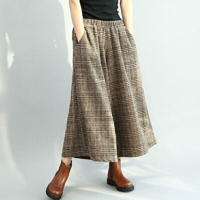 ワイドパンツ レディース ガウチョパンツ 7分丈 チェック柄 ウェストゴム 春ボトムス ズボンゆったり 大きいサイズ 秋冬 厚手 ロング ハイウエスト 体型カバー カジュアルコーデ 大人 おしゃれ き | coolcoool