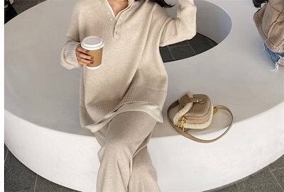 レイヤード風 セットアップ ニットセットアップ レディース 2点セット セーター フェイクレイヤード 春 秋冬 パンツ ロング丈パンツ 長袖 秋 冬 ワイドパンツ ゆったり 上下セット ファッション | coolcoool
