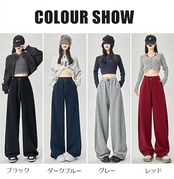 ワイドパンツ ガウチョパンツ レディース パンツ ロング丈 無地 イージーパンツ 春 秋冬 ロングパンツ ワイド スウェット ウエストゴム ゆったり 体型カバー ジャージ カーブパンツ 長ズボン ワ | coolcoool