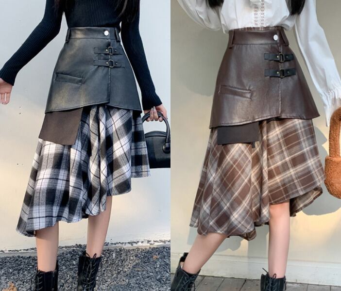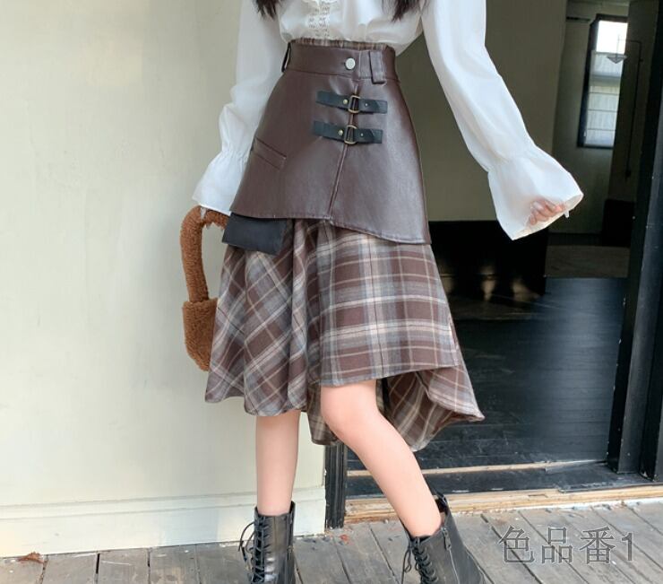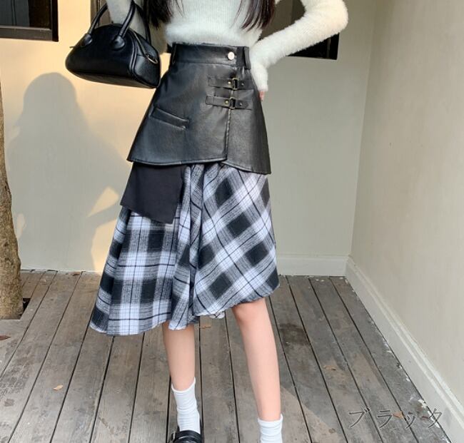 全2色 スカート アシンメトリー フリル 切り替え スリム 着痩せ sweet系