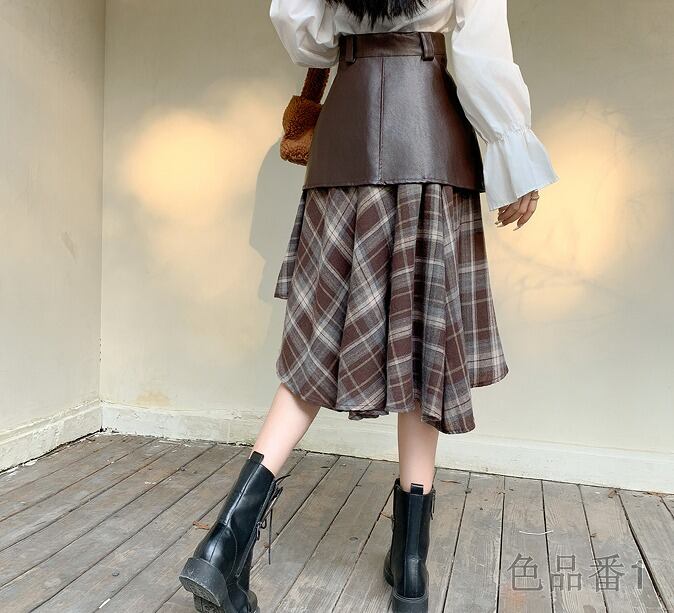 全2色 スカート 2点セット アシンメトリー フリル 切り替え スリム 着痩せ シンプル