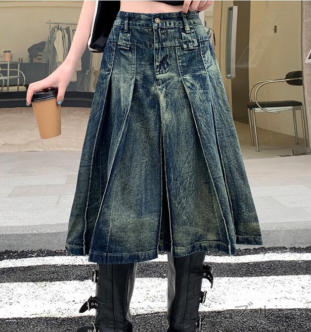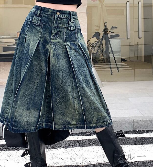 デニムスカート フリル 切り替え スリム 着痩せ デニム 【大きいサイズあり】 sweet系