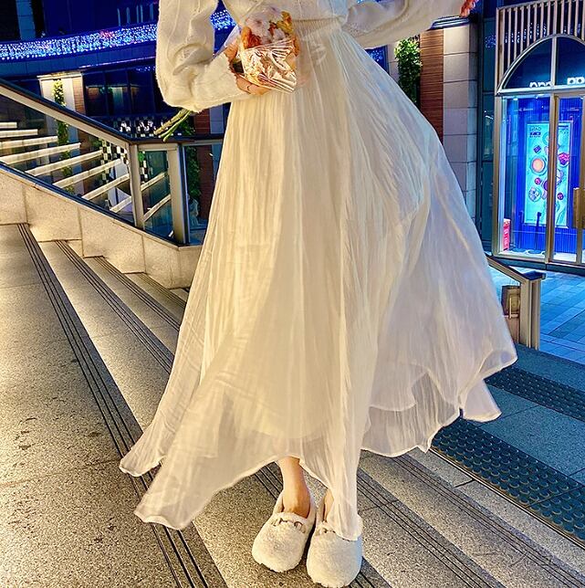 全2色 スカート アシンメトリー フリル 切り替え 体型カバー 着痩せ sweet系
