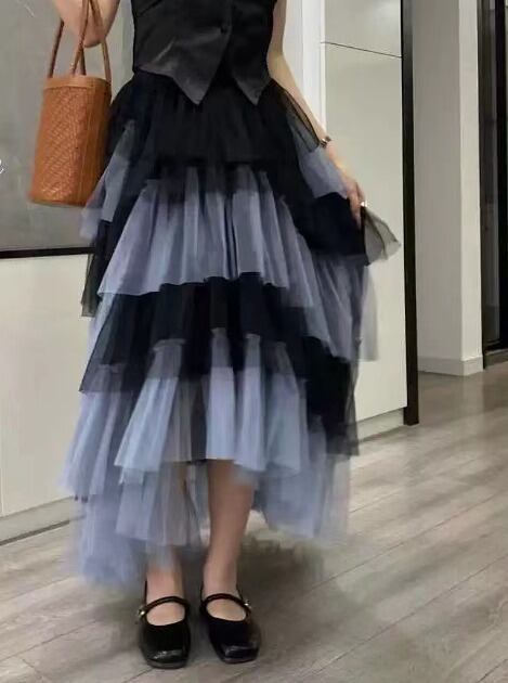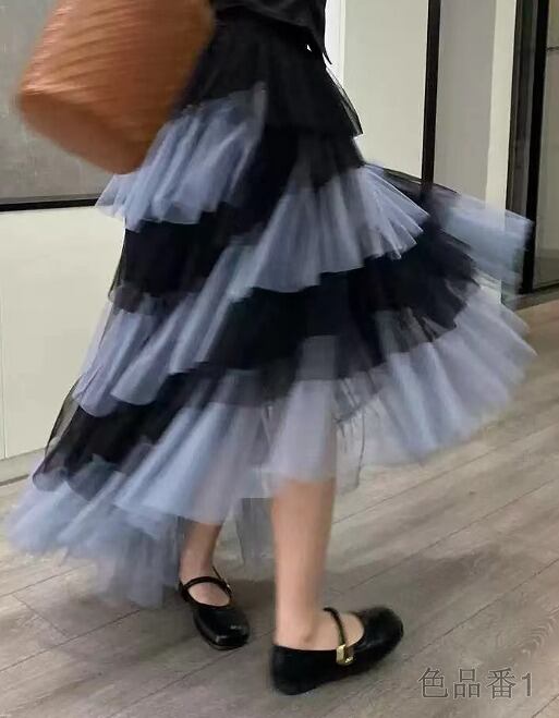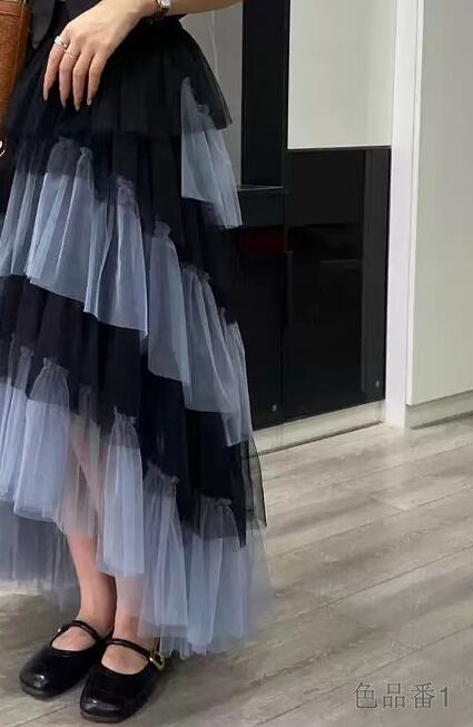 スカート フリル 切り替え バイカラー 体型カバー 着痩せ sweet系