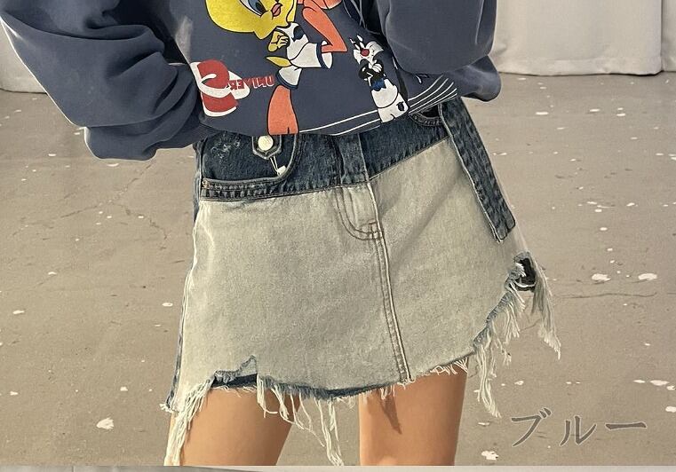 全2色 デニムスカート 切り替え バイカラー スリム 着痩せ デニム シンプル