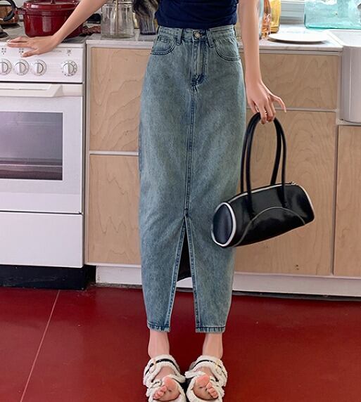デニムスカート スリット フリル 切り替え 体型カバー 着痩せ デニム シンプル