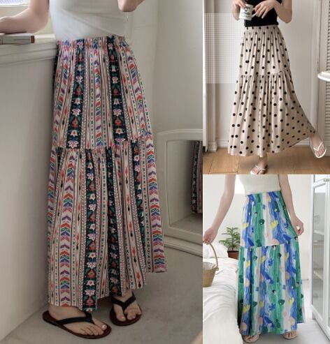 全9色 スカート フリル 切り替え バイカラー 体型カバー 着痩せ カジュアル