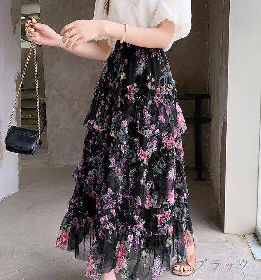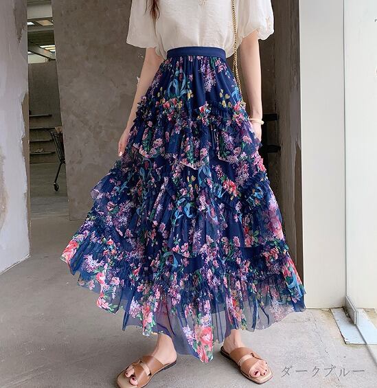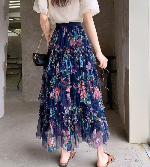 全4色 スカート チュール フリル 切り替え 体型カバー 着痩せ sweet系