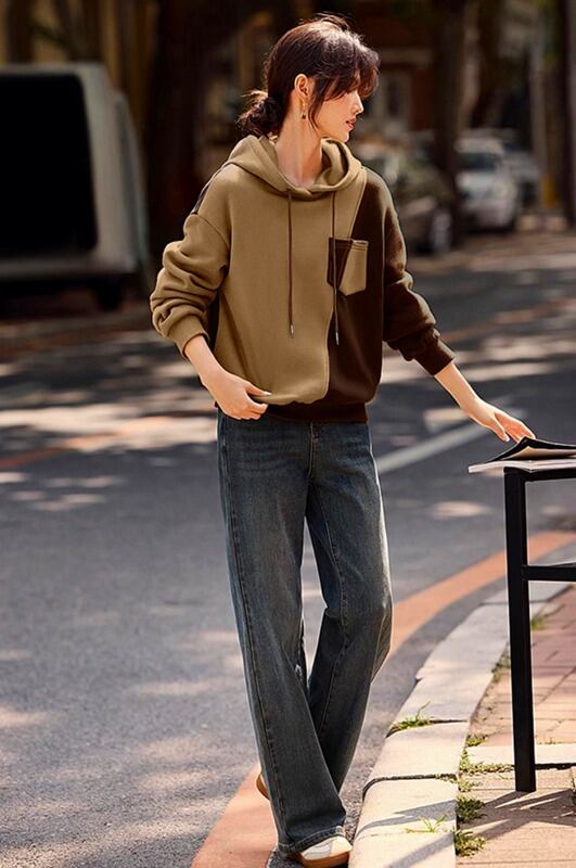 スウェット トレーナー 長袖 切替 バイカラー 体型カバー 着痩せ 帽子付き 【大きいサイズあり】