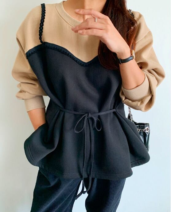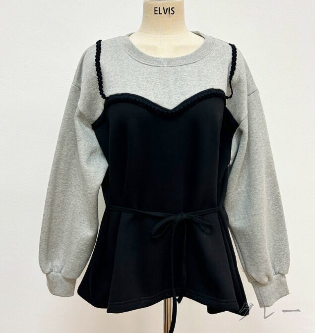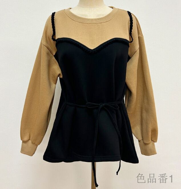 全2色 スウェット トレーナー 裏起毛 切り替え バイカラー 体型カバー 着痩せ カジュアル