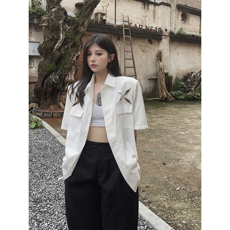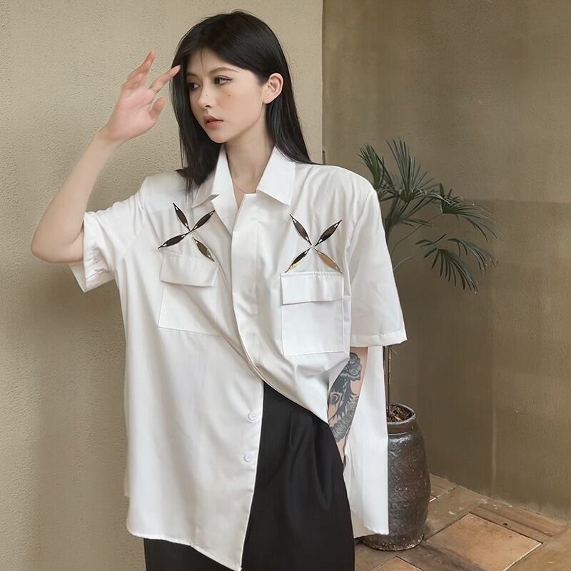 トップス シャツ カジュアルシャツ 半袖 薄手 ゆったり レディースシャツ