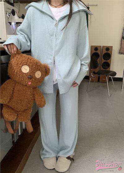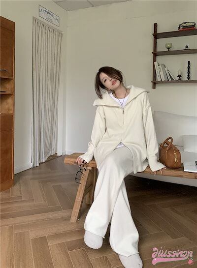 セットアップ パーカー フード付き ジップ ダブルチャック 長袖 ロングパンツ ワイド ストレート ウエストゴム ゆったり 無地 かわいい おしゃれ 秋 韓国ファッション レディース | coolcoool