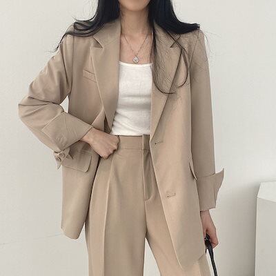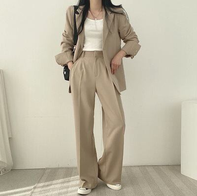 2024秋冬 カジュアルセットアップ ボタンブレザー+ハイウエストドレープパンツ ドラッグワイドパンツ トラウザーウエスタンパンツ長袖 おしゃれ かわいい 韓国ファッション レディース お出かけ | coolcoool