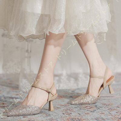 キラキラ バックストラップ パンプス ポインテッドトゥ レディース グリッター サンダル ハイヒール 6CM ピンヒール おしゃれ フェミニン セクシー 痛くない