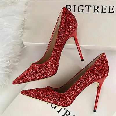 ヒール 大きいサイズパンプスキラキラハイヒールシューズキラキラポインテッドトゥラメ脚グリッター靴ピンヒール痛くない結婚式パーティー発表会披露宴謝会お呼ばれキャバ嬢華やか95cm レディース 韓国 | coolcoool