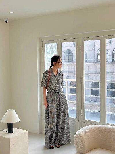 オールインワン レディース チェック柄 ワイドパンツ オーバーオール 春 夏 秋 半袖 ゆったり 体型カバー 女性 お呼ばれ 可愛い ワイドシルエット 大きいサイズ シンプル おしゃれ ゆったり カジ | coolcoool