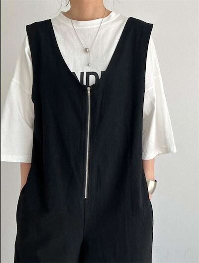 サロペット パンツ レディース オールインワン Vネック 楽ちん サロペット ワイドパンツ 春夏 パンツドレス サロペットパンツ ボトムス オーバーオール ゆったり 体型カバー 着痩せきれいめ 大きい | coolcoool