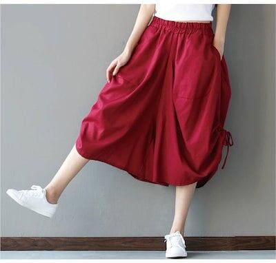 3色 パンツ レディース ガウチョ ワイド パンツ ズボン ボトムス ルーズ おしゃれ 可愛い サルエル風 スカーチョ風 カジュアル クロップドパンツ ウエストゴム ゆったり 夏コーデ 綿 薄手 ブル | coolcoool