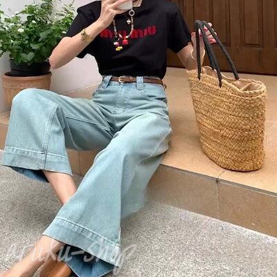 デニムパンツ レディース デニム パンツ ボトムス 9分丈 長ズボン ロングパンツ 薄手 春夏秋 ハイウエスト ワイドパンツ 体型カバー 大人女性 ストレート ジーンズ ウエストボタン きれいめ 大き | coolcoool