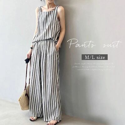 セットアップ レディース 夏 2点セット 薄手 上下セット キャミソール ワイドパンツ フレアパンツ 涼しい カジュアル ナチュラル 大きいサイズ ゆったり 体型カバー ふんわり 爽やか ストライプ | coolcoool