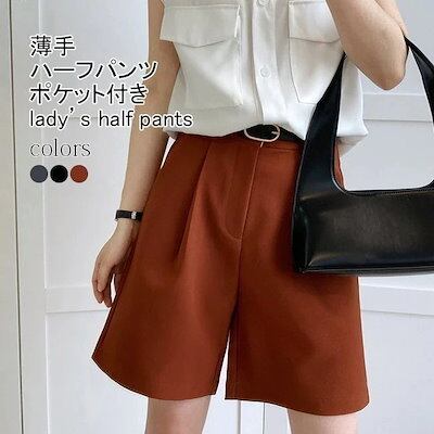 ショートパンツ レディース ワイドパンツ 無地 薄手 膝上丈 スーツ素材 フロントタック ボトムス カジュアル ハイウエスト ポケット付き ゆったり シンプル 着まわしやすい 脚長効果 美脚 夏向き今 | coolcoool